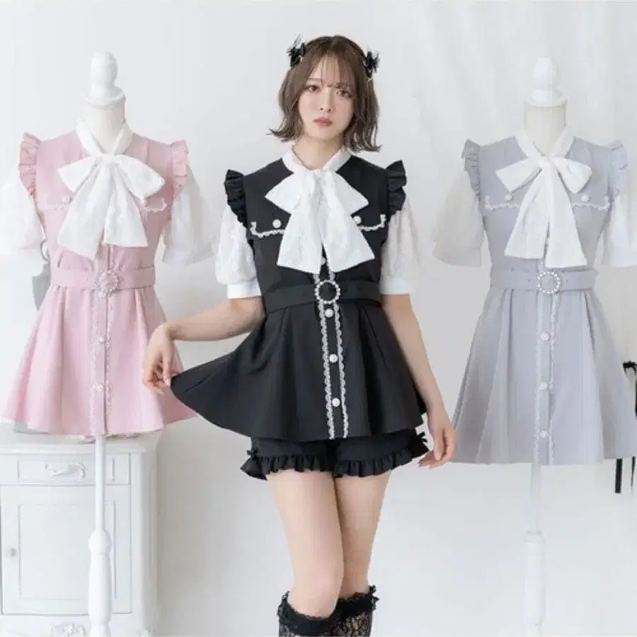 보타이 레이스 비쥬 벨트 원피스 그레이