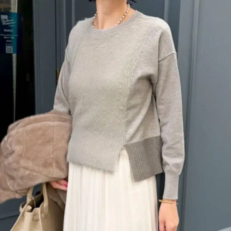 [노리즈] 라메 페더 절개 바이컬러 풀오버 니트
