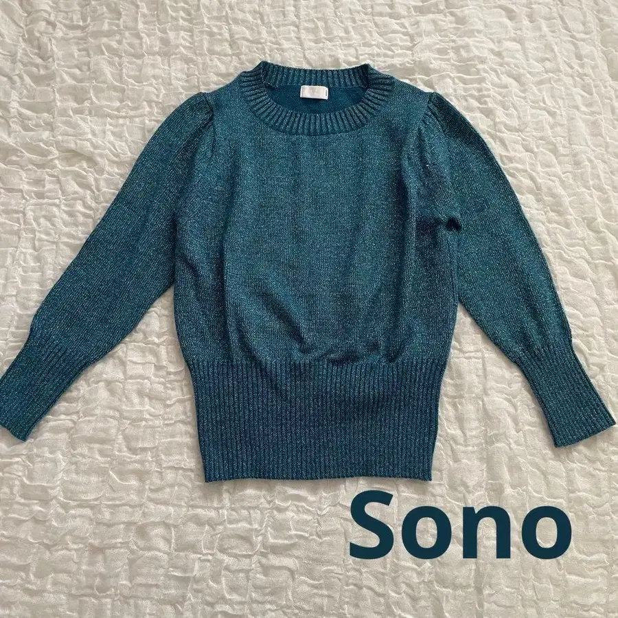 소노 퍼프 슬리브 라메 믹스 니트 블루그린