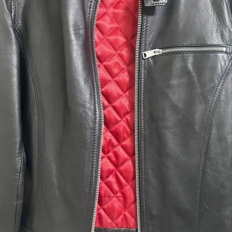 REPLAY 블랙 가죽 자켓 퀼팅 안감