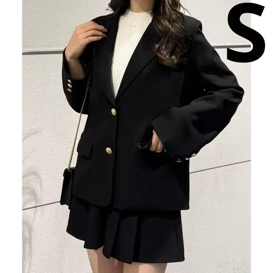 참고 상품명: [ 어깨 패드 포함 ] 골드 버튼 테일러드 자켓 + 플리츠 숏팬츠 set