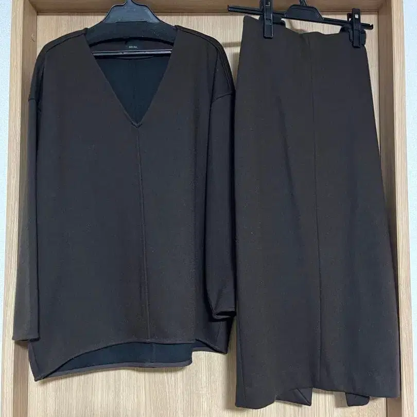 스픽 앤 스팬 브라운 V넥 스커트 셋업