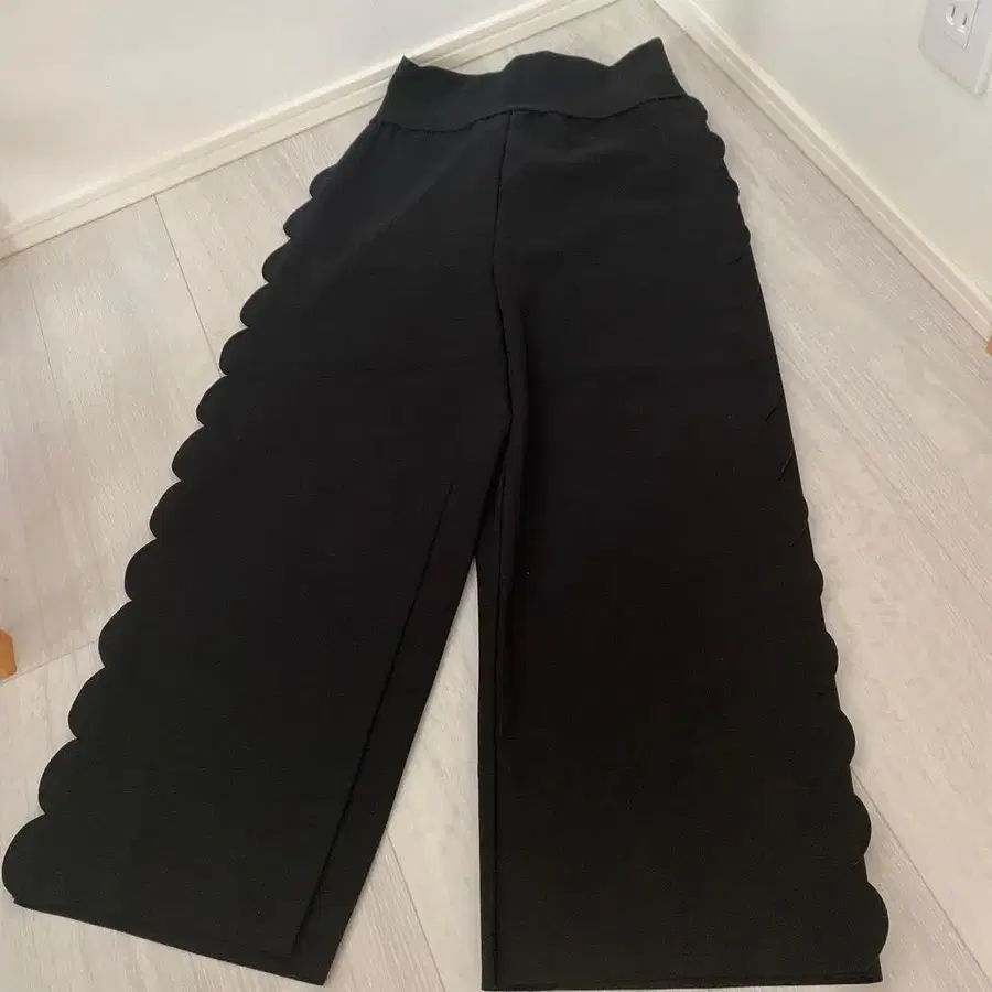 새상품급 neige 블랙 스캘럽 헴 와이드 팬츠