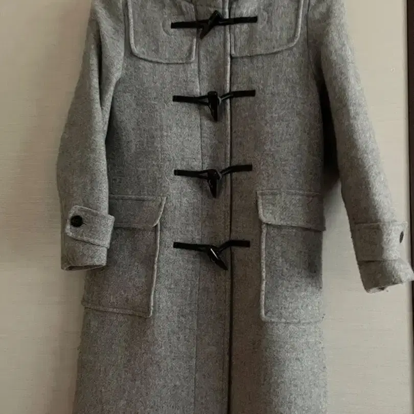 그레이 더플 코트 후드 부착
