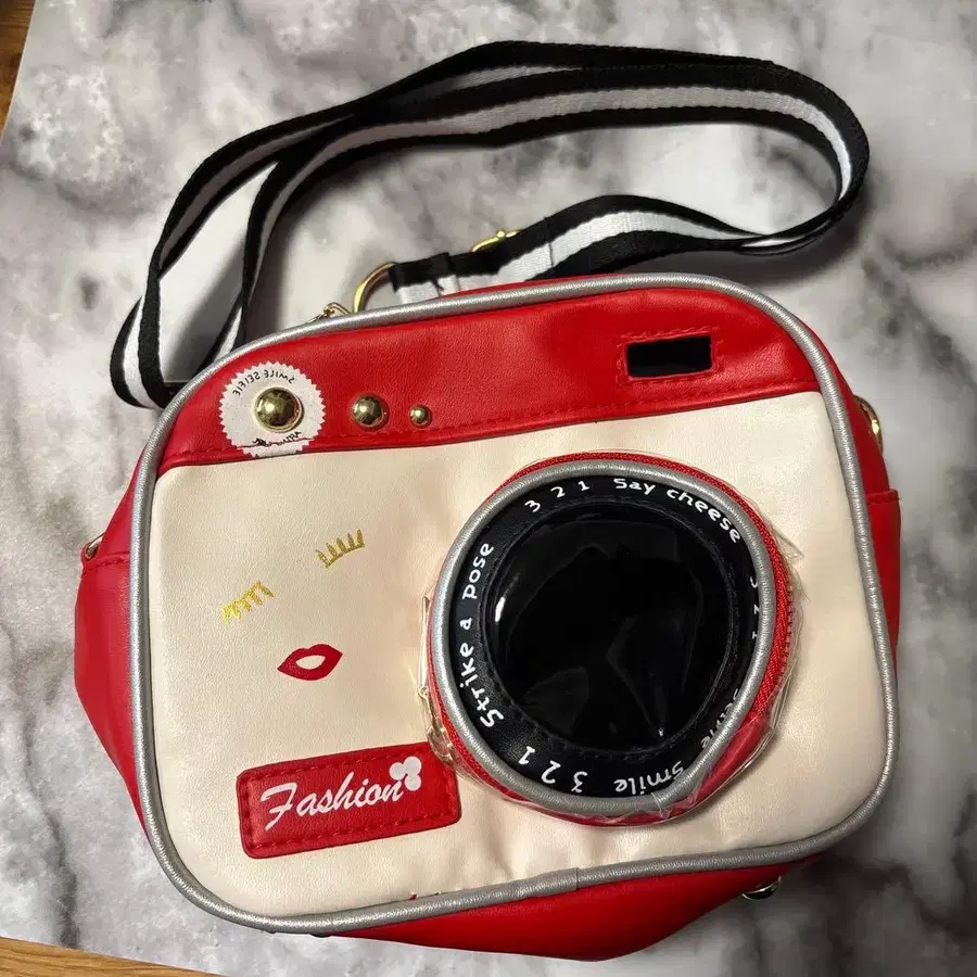 새상품 미사용 카메라형 숄더백 PU 가죽 빨간색 Red 레드 핸드백