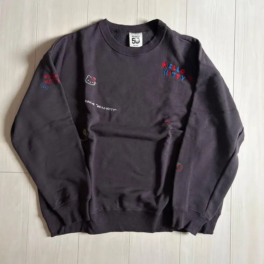 미사용에 가까운 프릭스스토어 헬로키티 자수 맨투맨 차콜 그레이