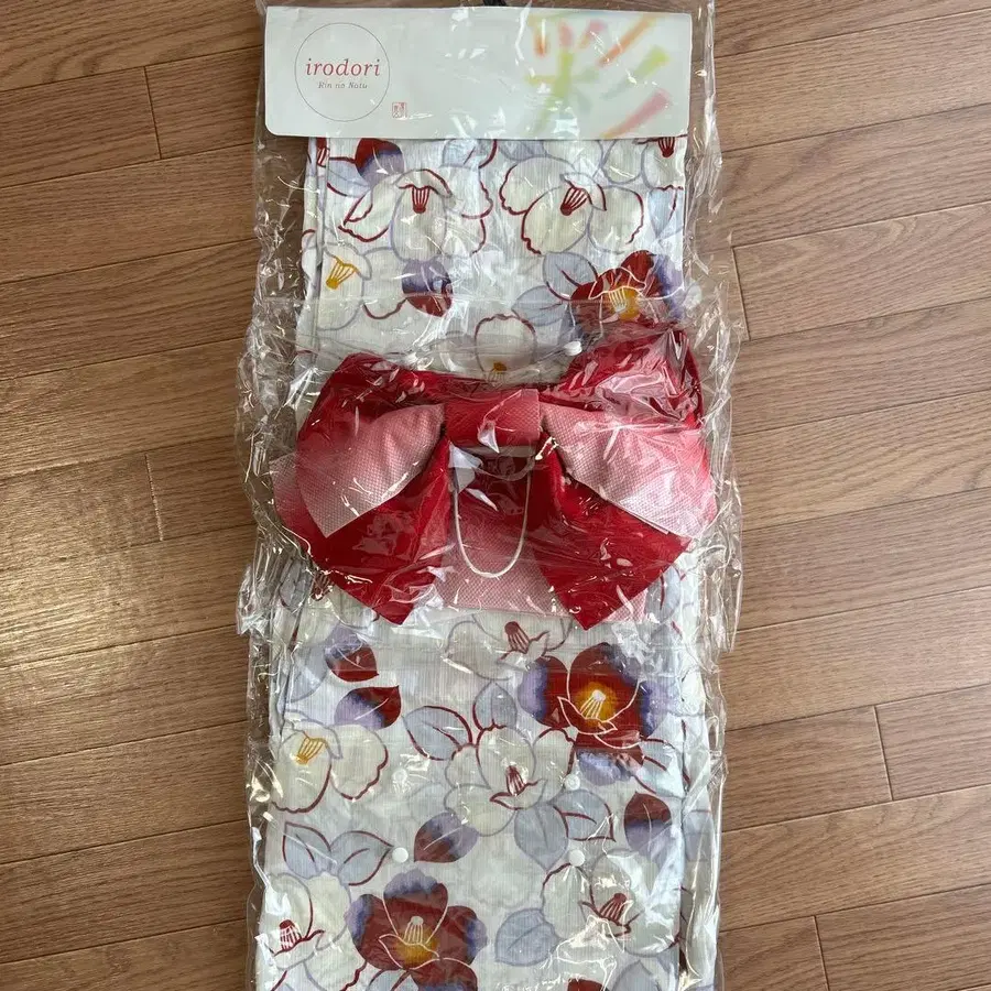 꽃무늬 유카타 빨간색 리본 오비 세트
