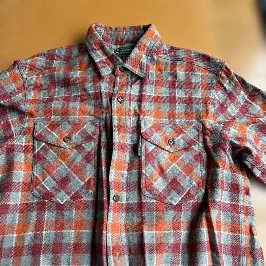 빨간색과 오렌지색 체크 플란넬 셔츠