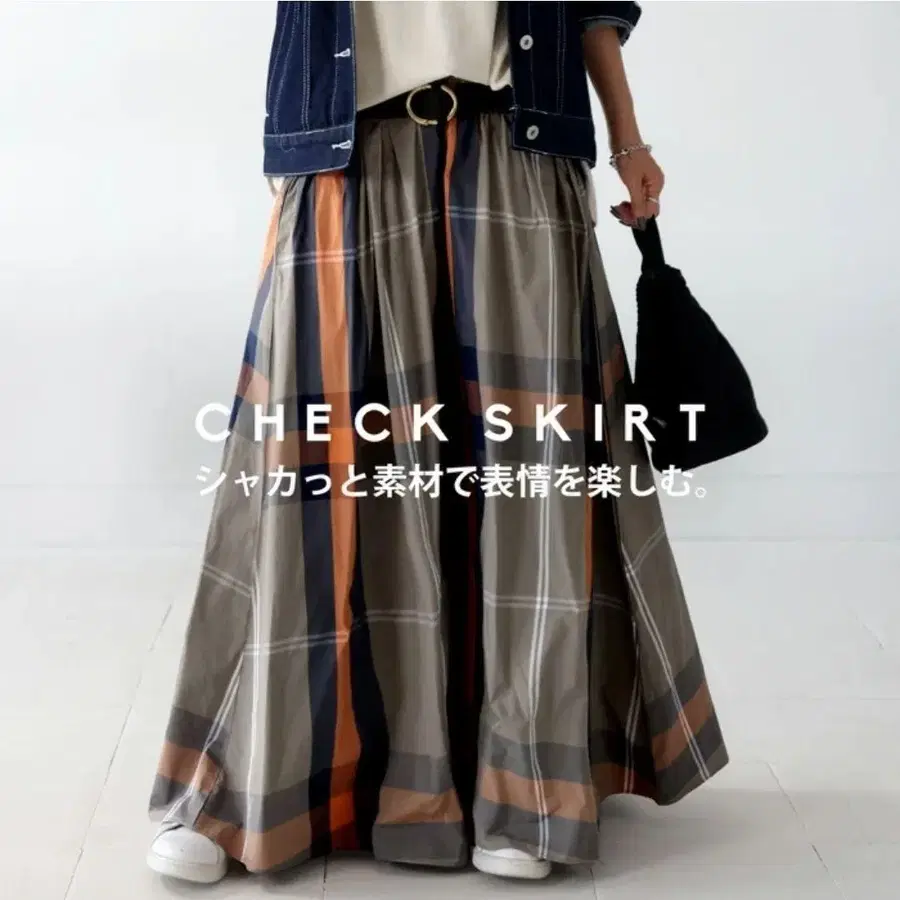 카키 체크 무늬 플레어 스커트 정가 6930엔