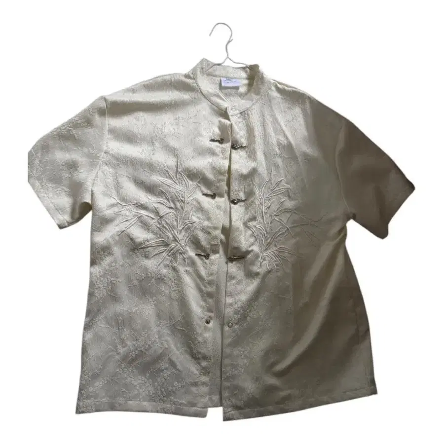 아이보리 자수 반팔 셔츠 L 사이즈 상당 중식