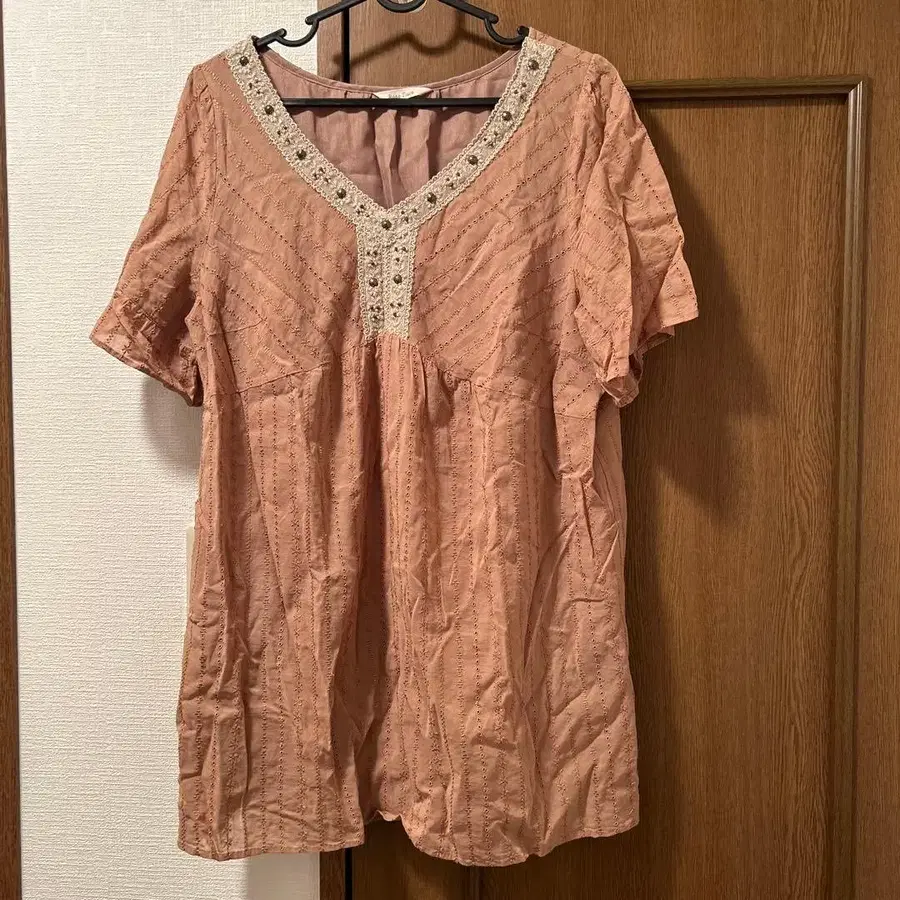 Rose Tiara 핑크 V넥 반팔 셔츠