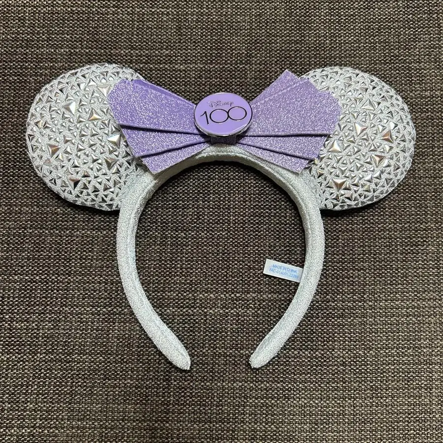 디즈니 머리띠 100주년 기념 실버 퍼플 보라색 리본
