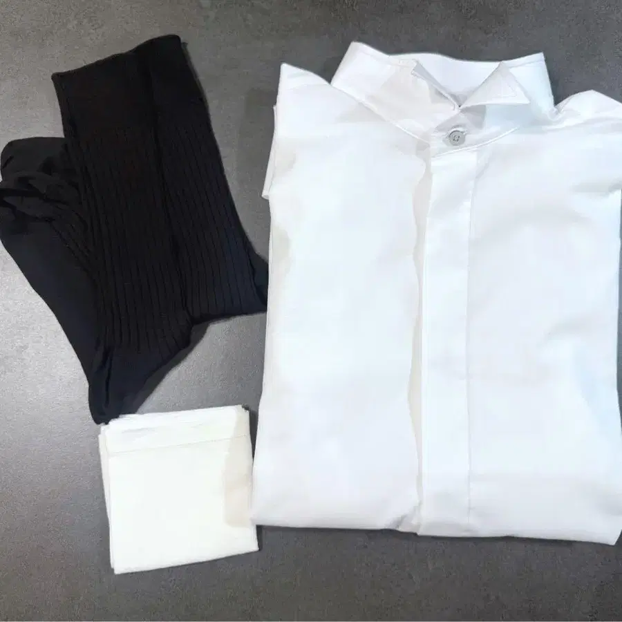 화이트 스탠드 칼라 셔츠와 삭스 세트