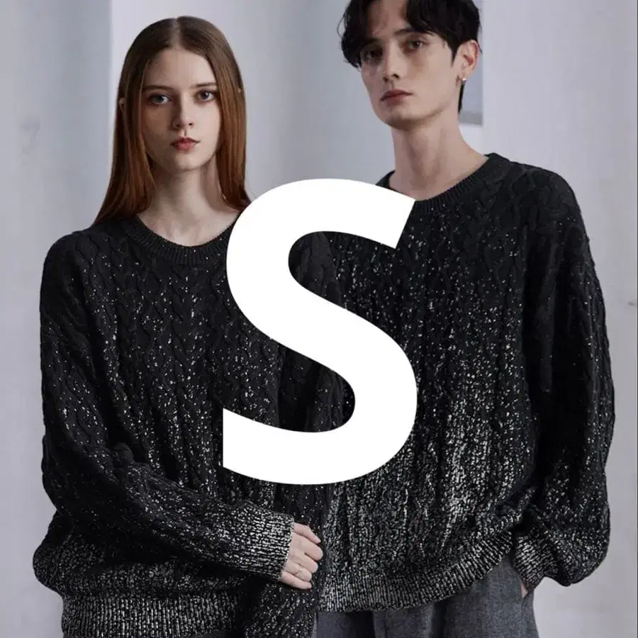 clel CLEL 호일 프린트 케이블 크루넥 니트