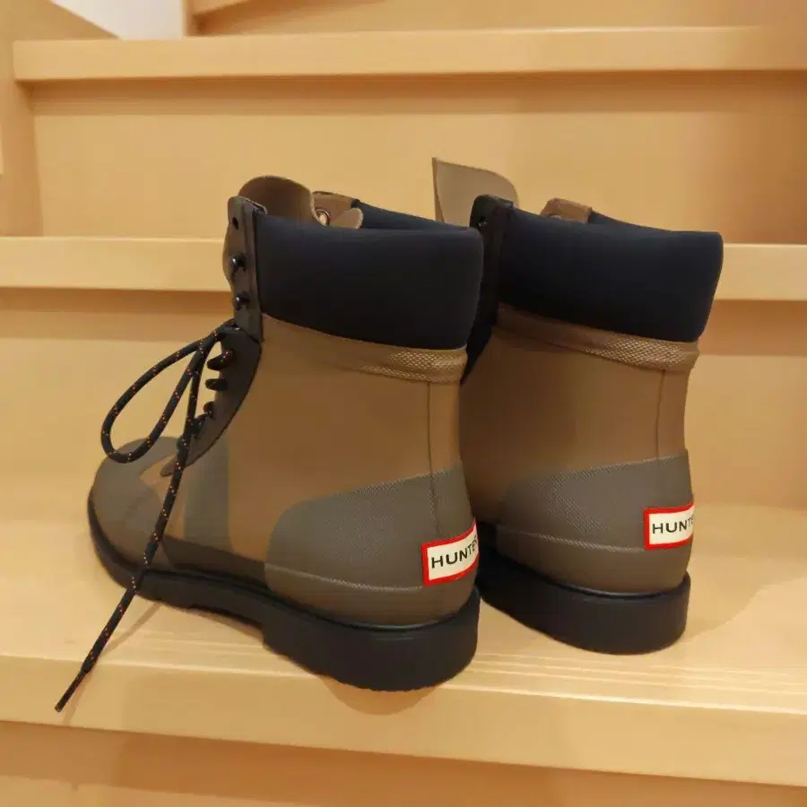 HUNTER 하이컷 레인부츠 브라운 블랙