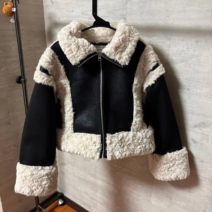 EVRIS 숏 기장 무스탕 블루종 블랙
