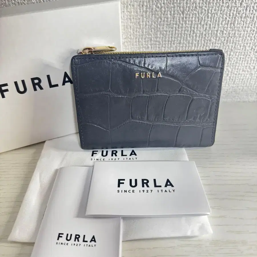 [ FURLA ] 크로커다일 패턴 접이식 지갑 그레이
