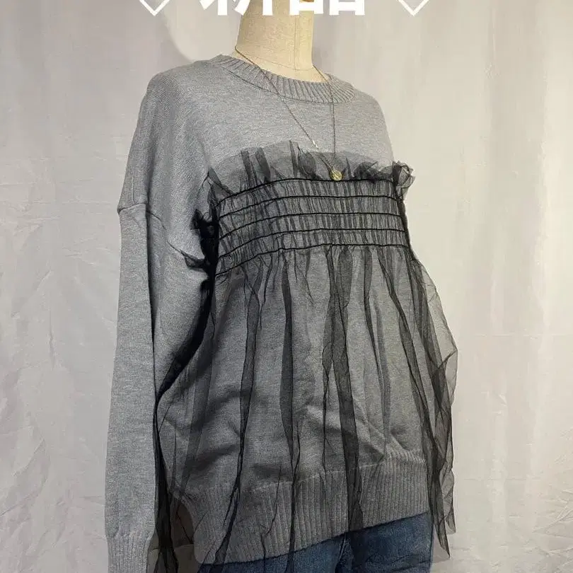 새상품 그레이 프릴 니트 스웨터 긴팔