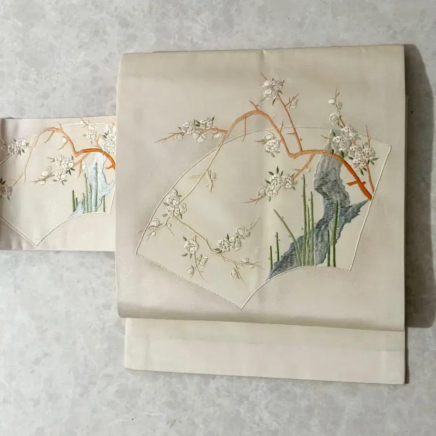 나고야 오비 수제 자수 니시진 비단 순수 실크 벚꽃 아이보리 mym104