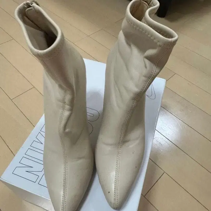 리엔다 아이보리 가죽 숏부츠 하이힐