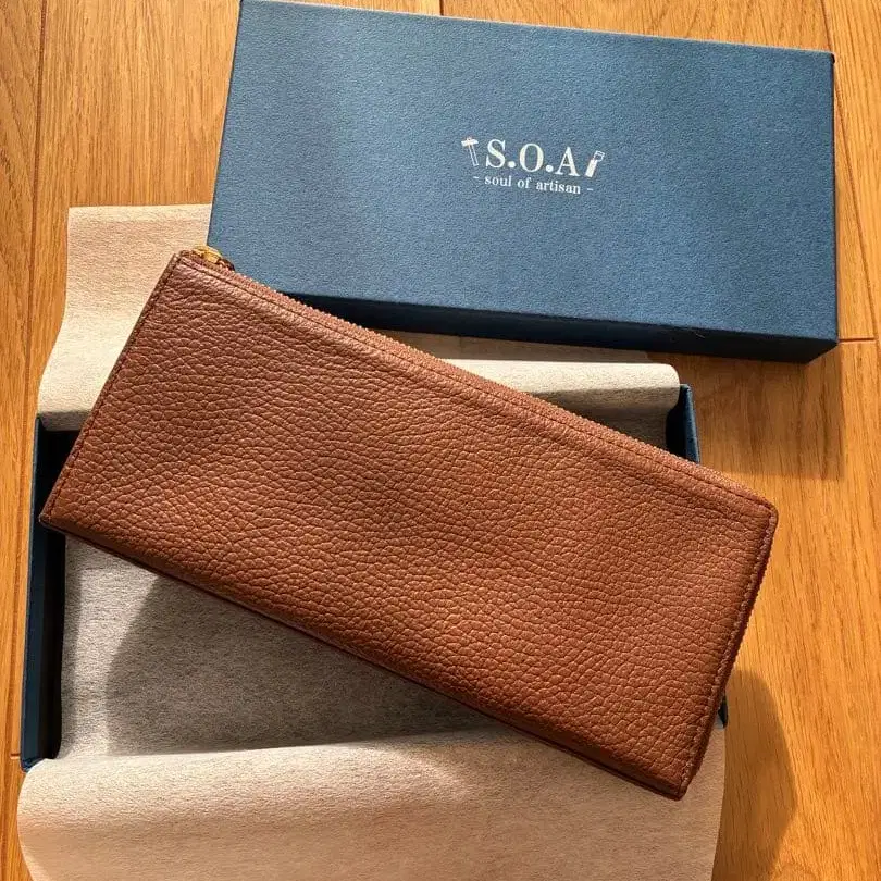 S.O.A 브라운 L자형 지퍼 얇은 타입 장지갑 브라운