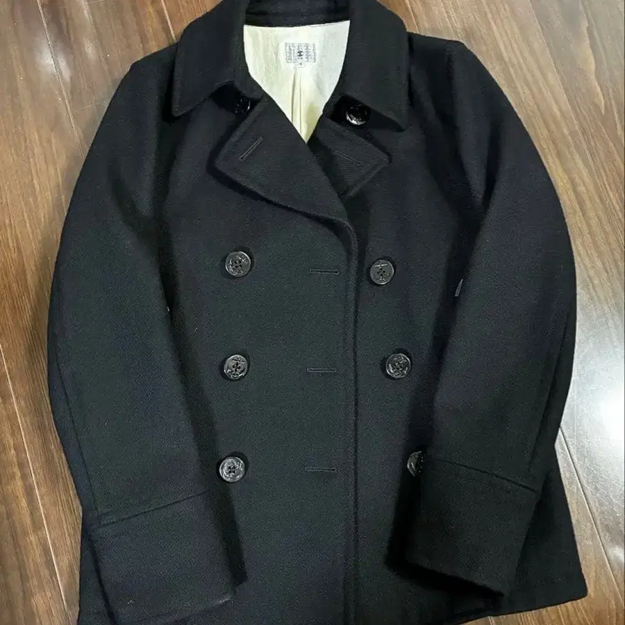 다케오 키쿠치 XL 블랙 더블 브레스트 피 코트