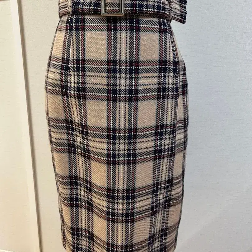 [ 새상품 미사용 ] 저스길리티 벨트 포함 체크 무늬 타이트 스커트
