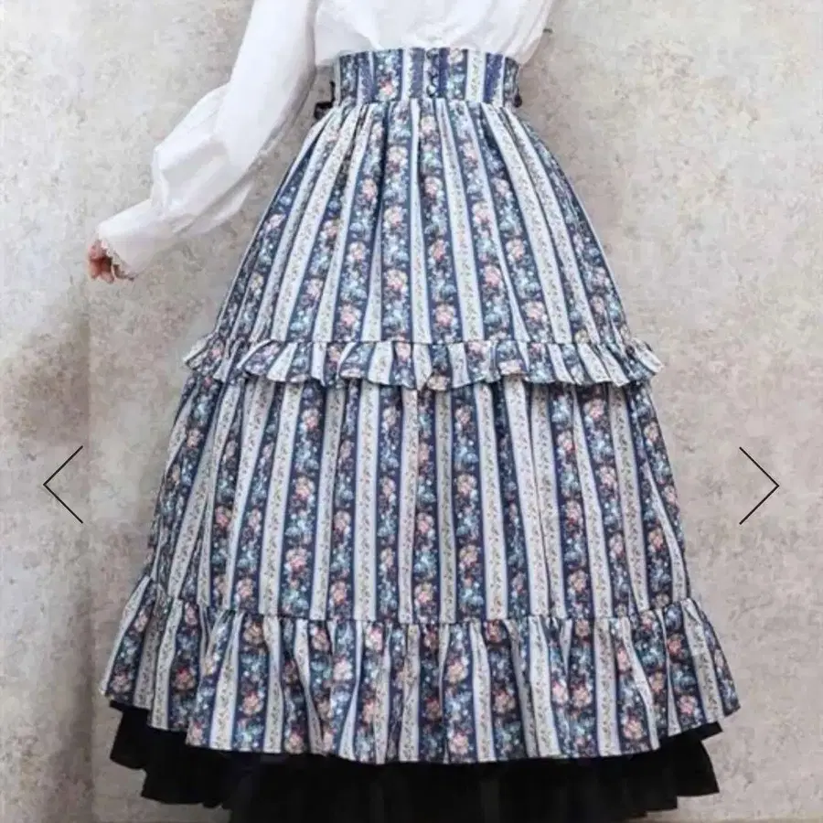 액시즈 스트라이프 로즈 패턴 스커트