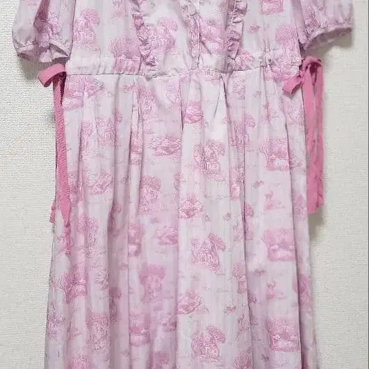 에밀리 템플큐트 풍경 무늬 핑크 반팔 원피스