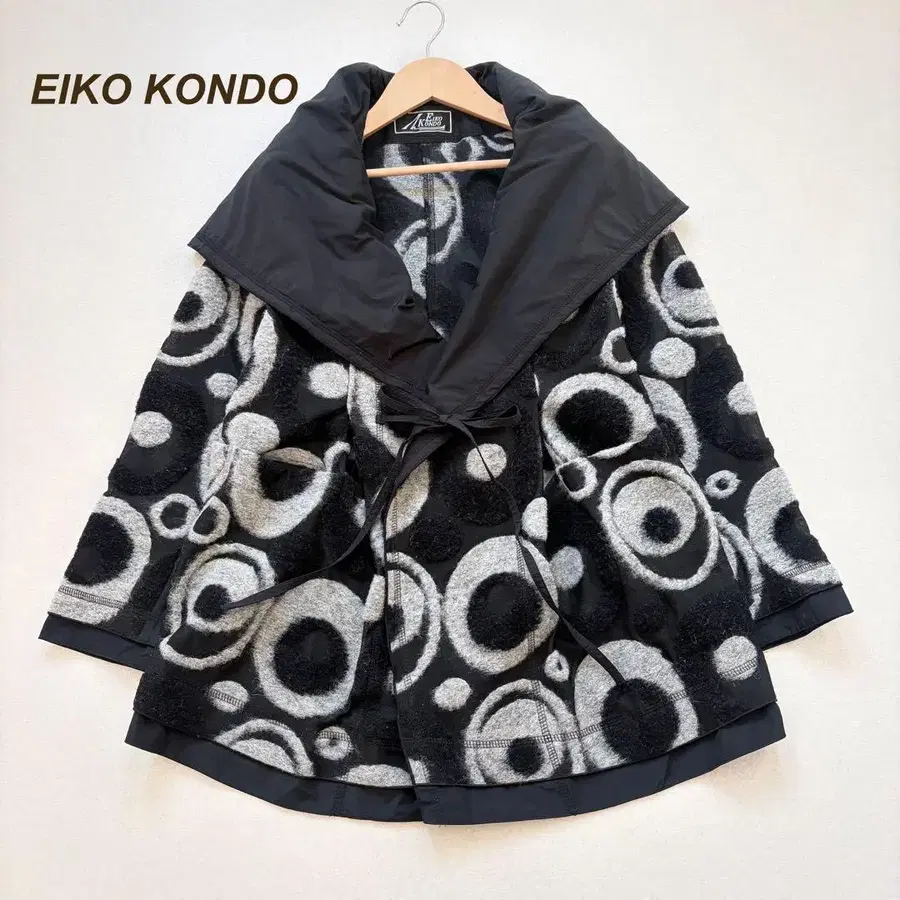 에이코 콘도 도트 서클 무늬 가운 가디건 겉옷 블랙