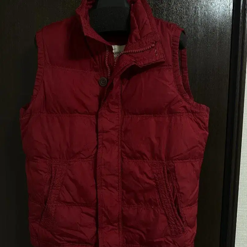 다운 베스트이며, 사이즈 표기 M. 시크한 빨간색입니다.