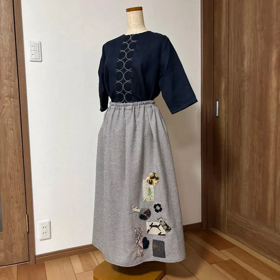 미나 페르호넨 패치워크 턱 개더 스커트 핸드메이드
