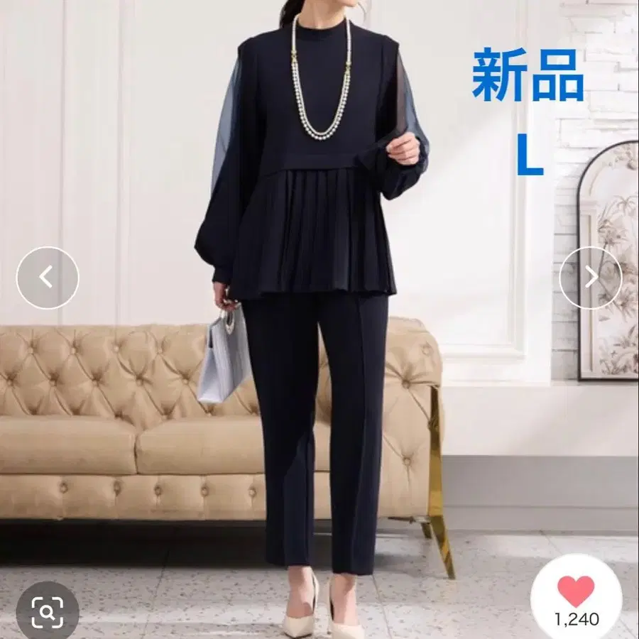 새상품 DRESS PLUS 플리츠 절개 셋업 팬츠 드레스 L