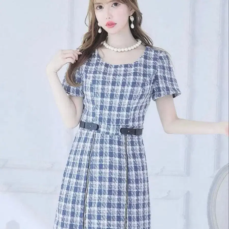 체크 무늬 트위드 드레스 허리 벨트 포함