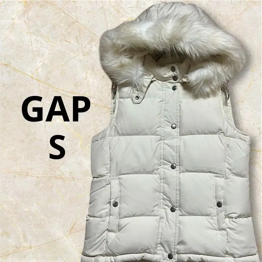 GAP 다운 베스트 화이트 S 후드 퍼 포함 다운 75% 겨울 방한