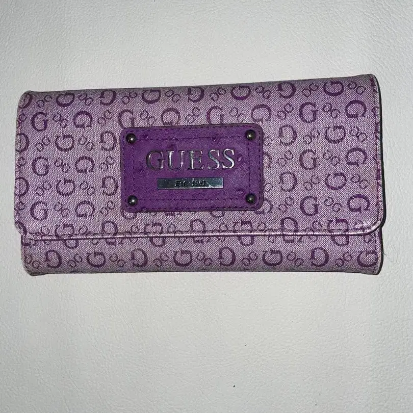 GUESS 로고 패턴 퍼플 장지갑 여성용