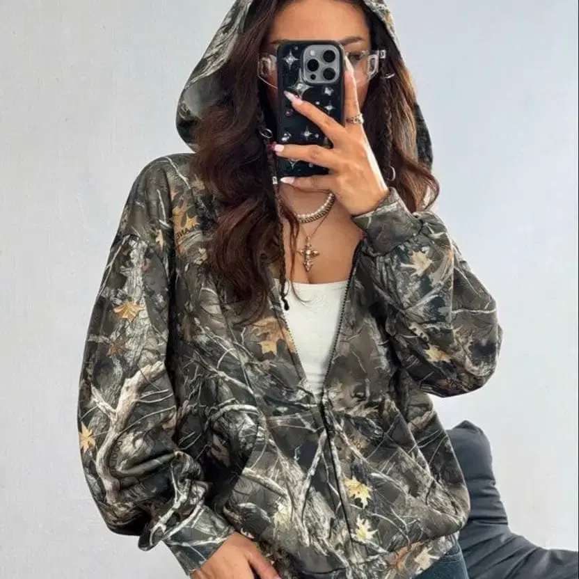 카모 패턴 풀 집업 후드티