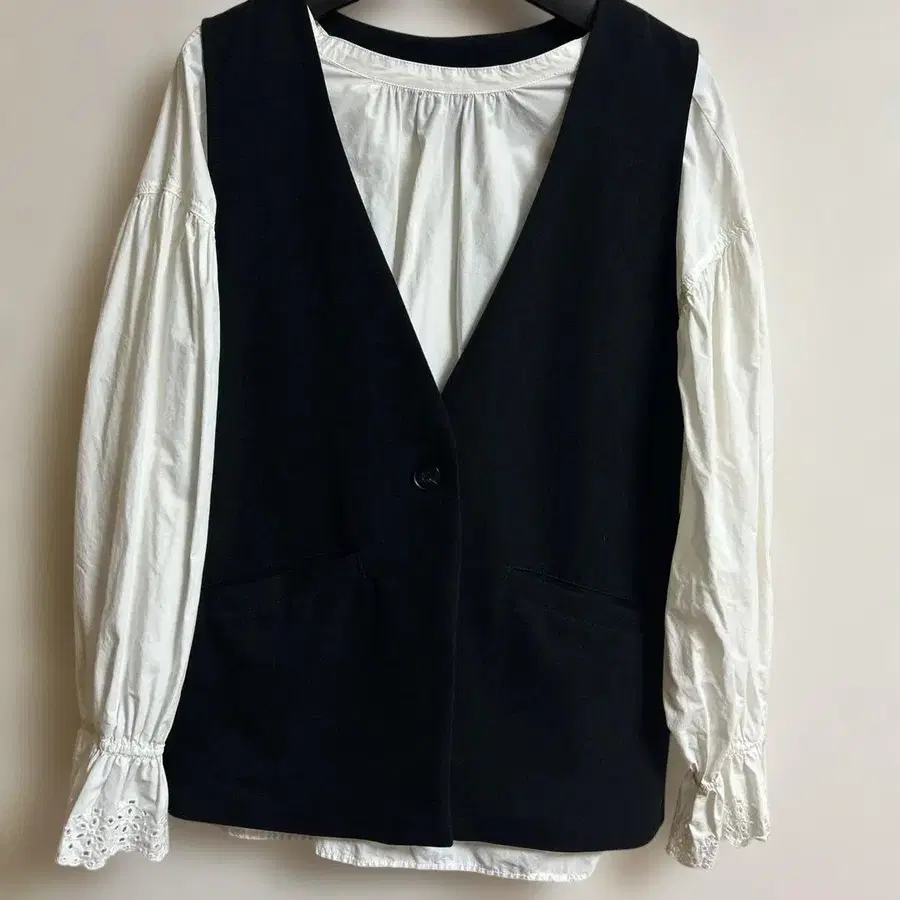 스튜디오 CLIP 블랙 슬리브리스 베스트 셋업