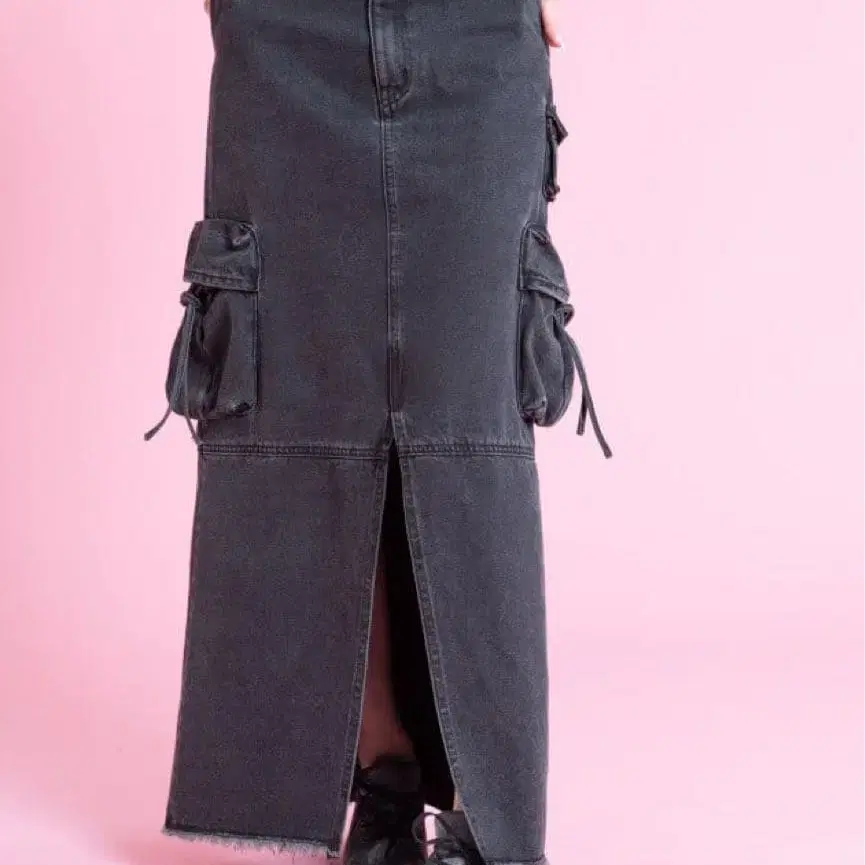 [ Ray BEAMS ] 카고 데님 스커트 블랙