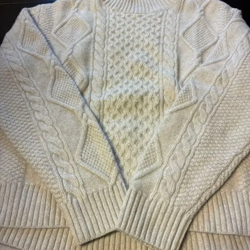어반 리서치 아이보리 케이블 니트 하이넥 스웨터