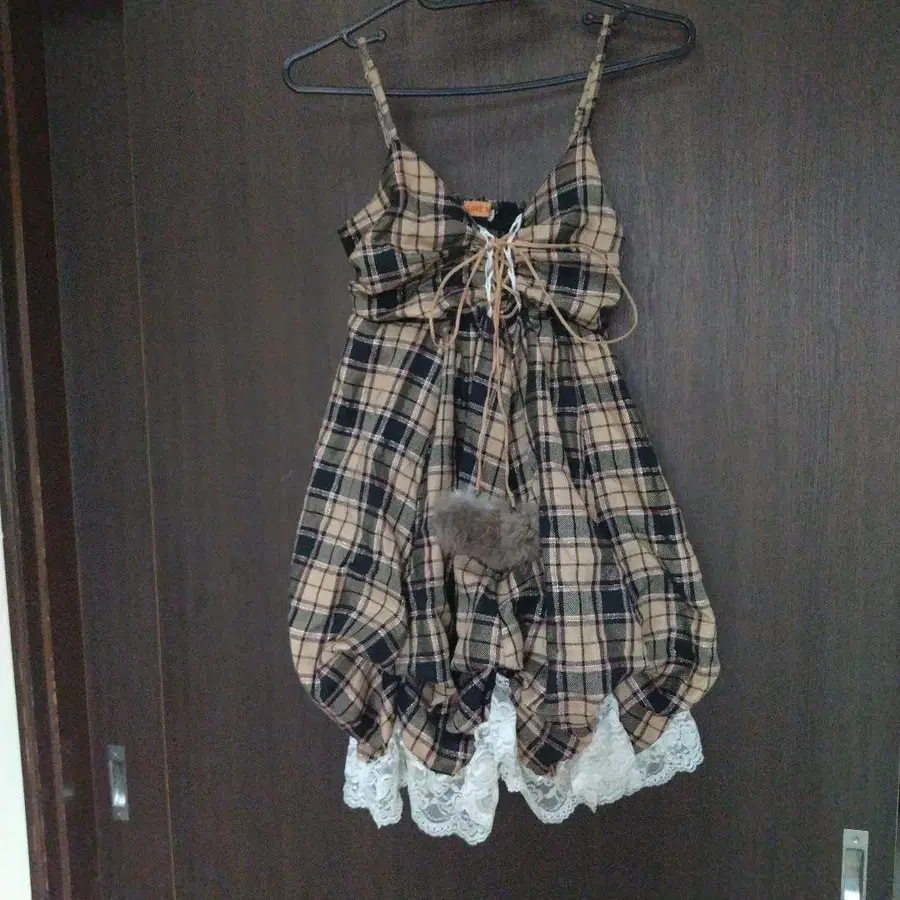 LOVE ME 슬리브리스 미니 원피스 베이지 블랙 체크