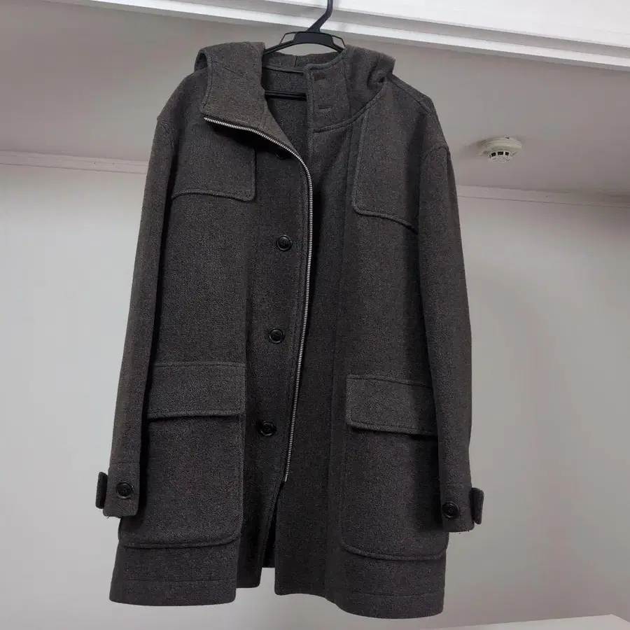 TAKEO KIKUCHI 후드 부착 그레이 울 코트