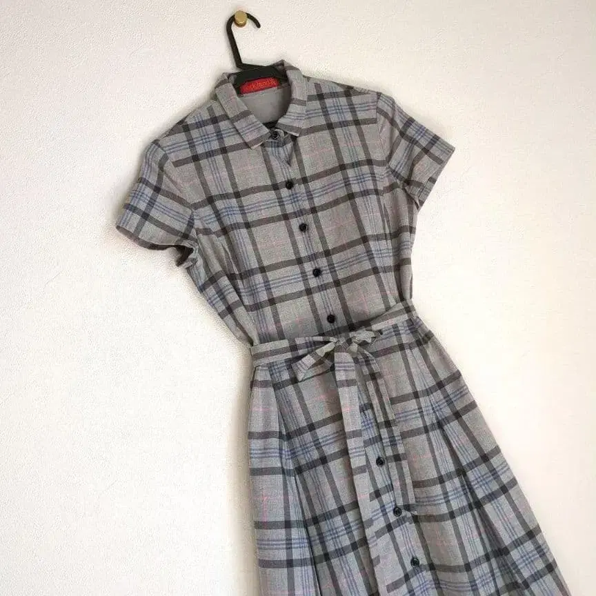 Yorkland 반팔 체크 셔츠 원피스 그레이