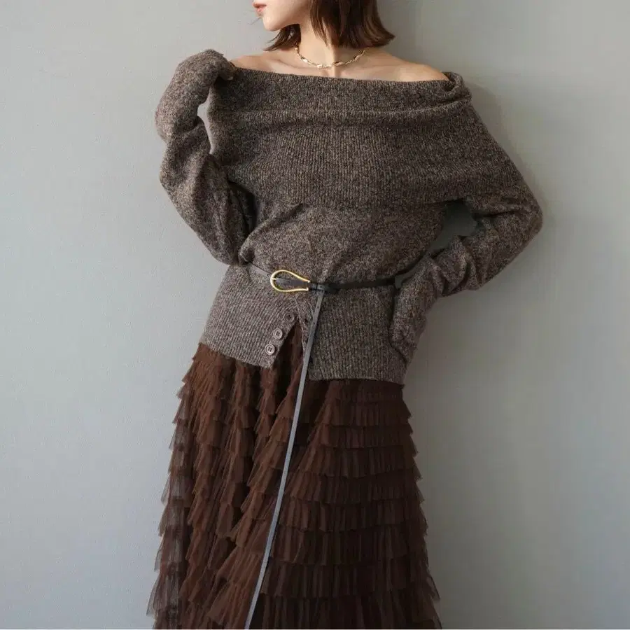 뤼미에 믹스얀 오프숄더 니트 풀오버 lumier