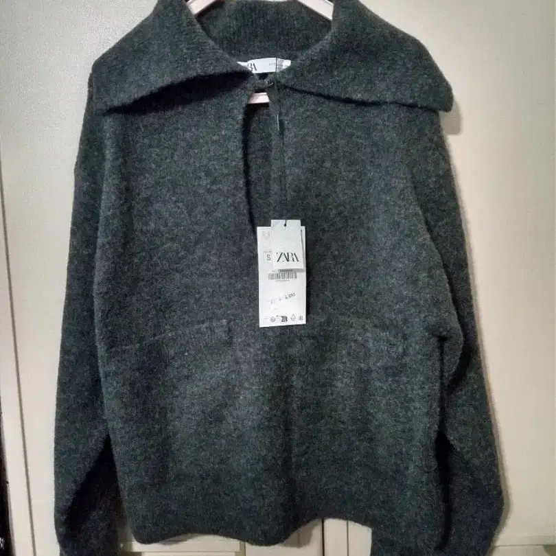 ZARA 다크 그레이 세일러 카라 V넥 넉넉한 니트 무지 미사용 포켓