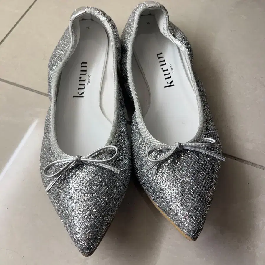 새상품급 쿠룬 도쿄 실버 라메 레이스 글리터 발레 슈즈 24
