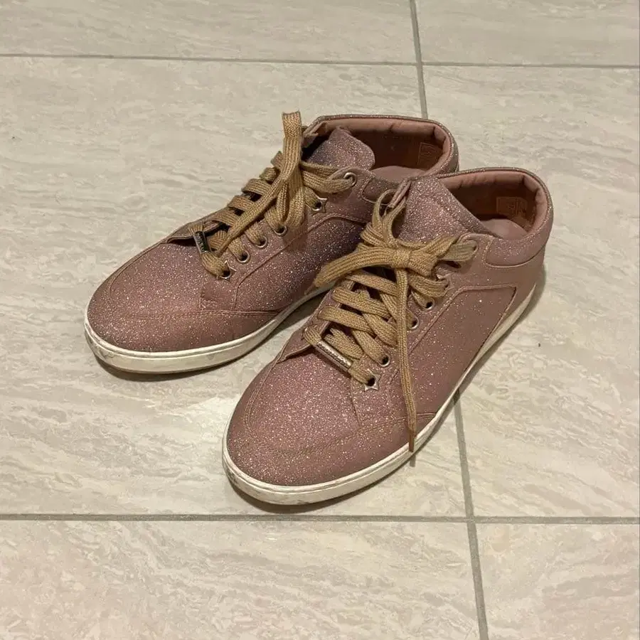 지미추 글리터 핑크 하이컷 스니커즈 로우컷 골드
