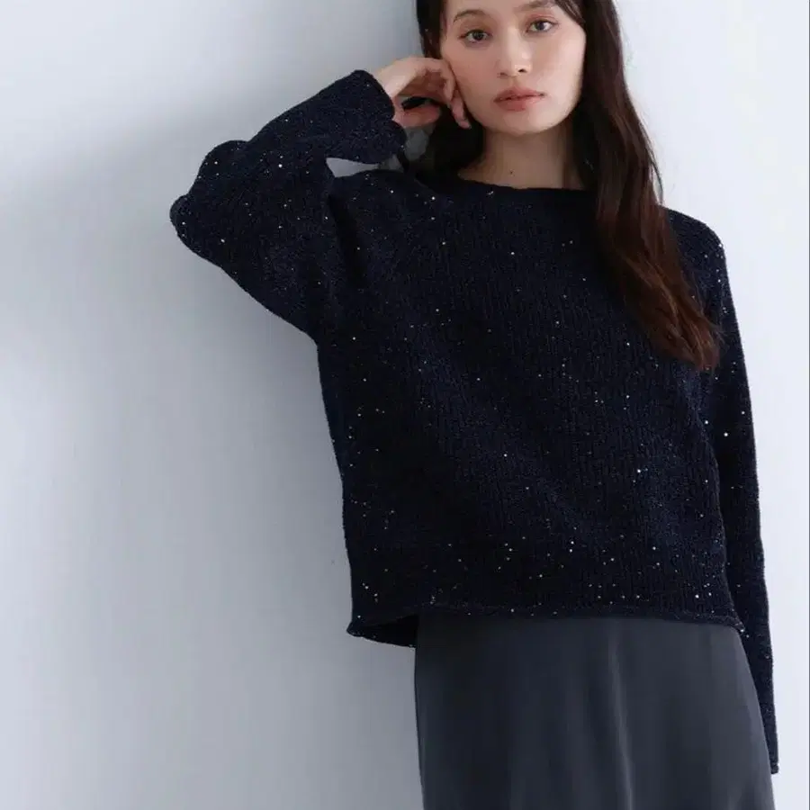 화려한 존재감을 뽐내는 스팽글 장식 모헤어 니트입니다.