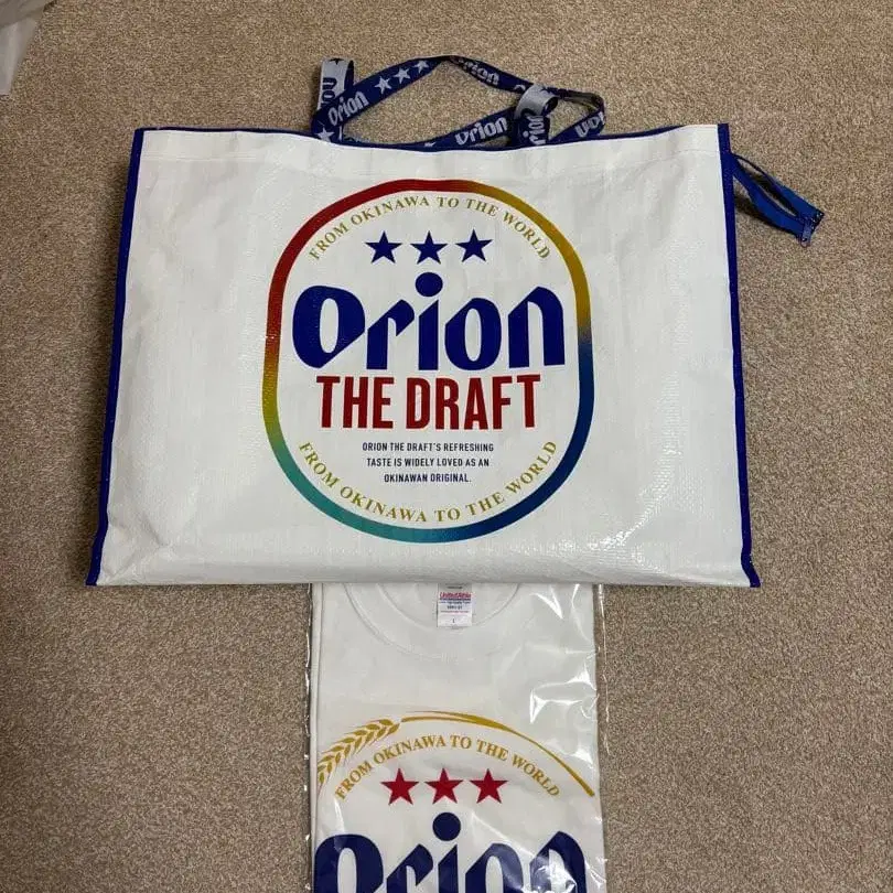오리온 맥주 T셔츠 L 사이즈 화이트 오리온 맥주 쇼핑백