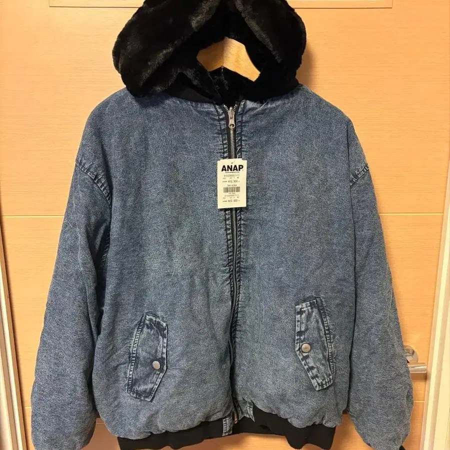 택 포함 새상품 ANAP 후드 부착 리버서블 블루종 프리 사이즈